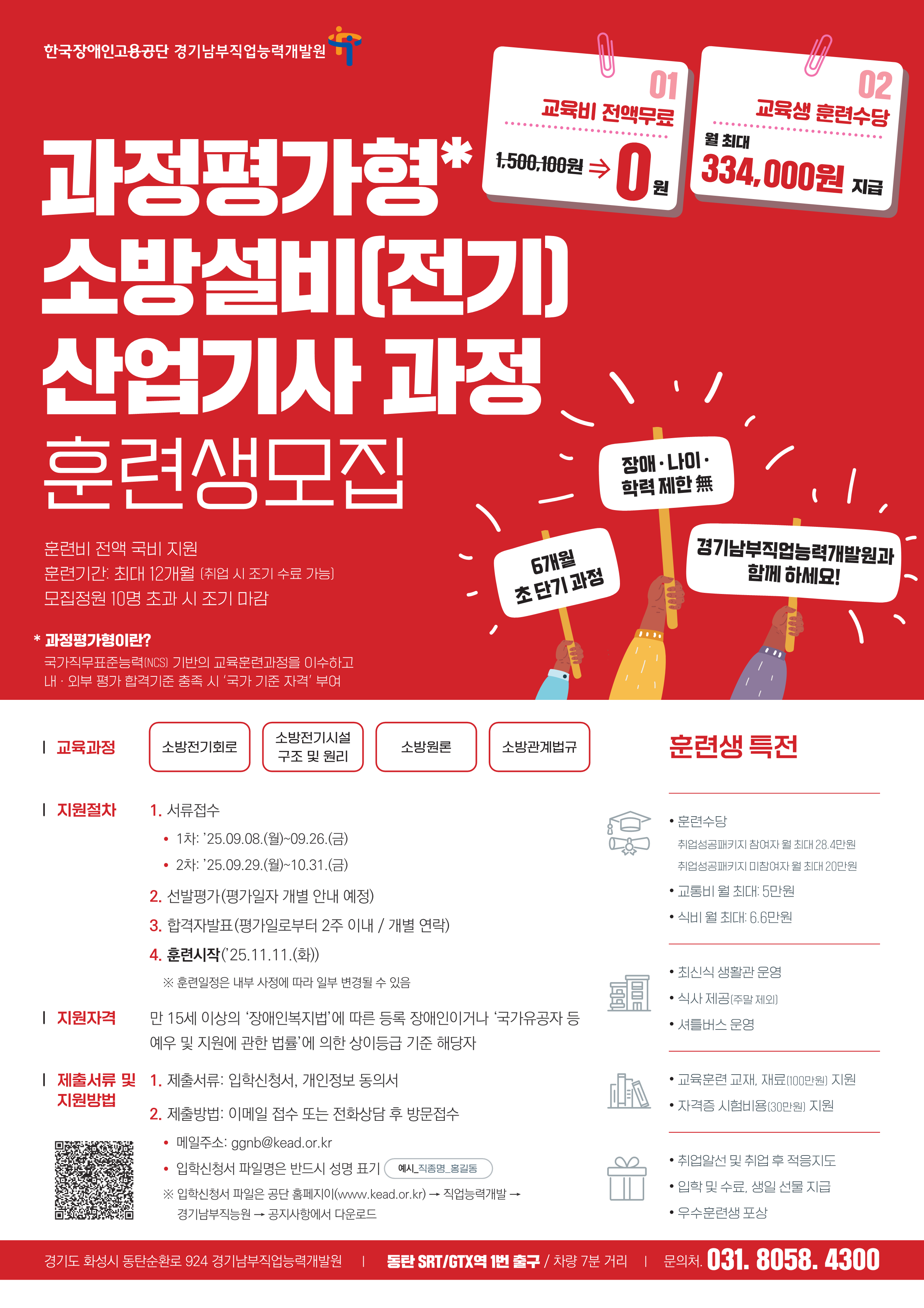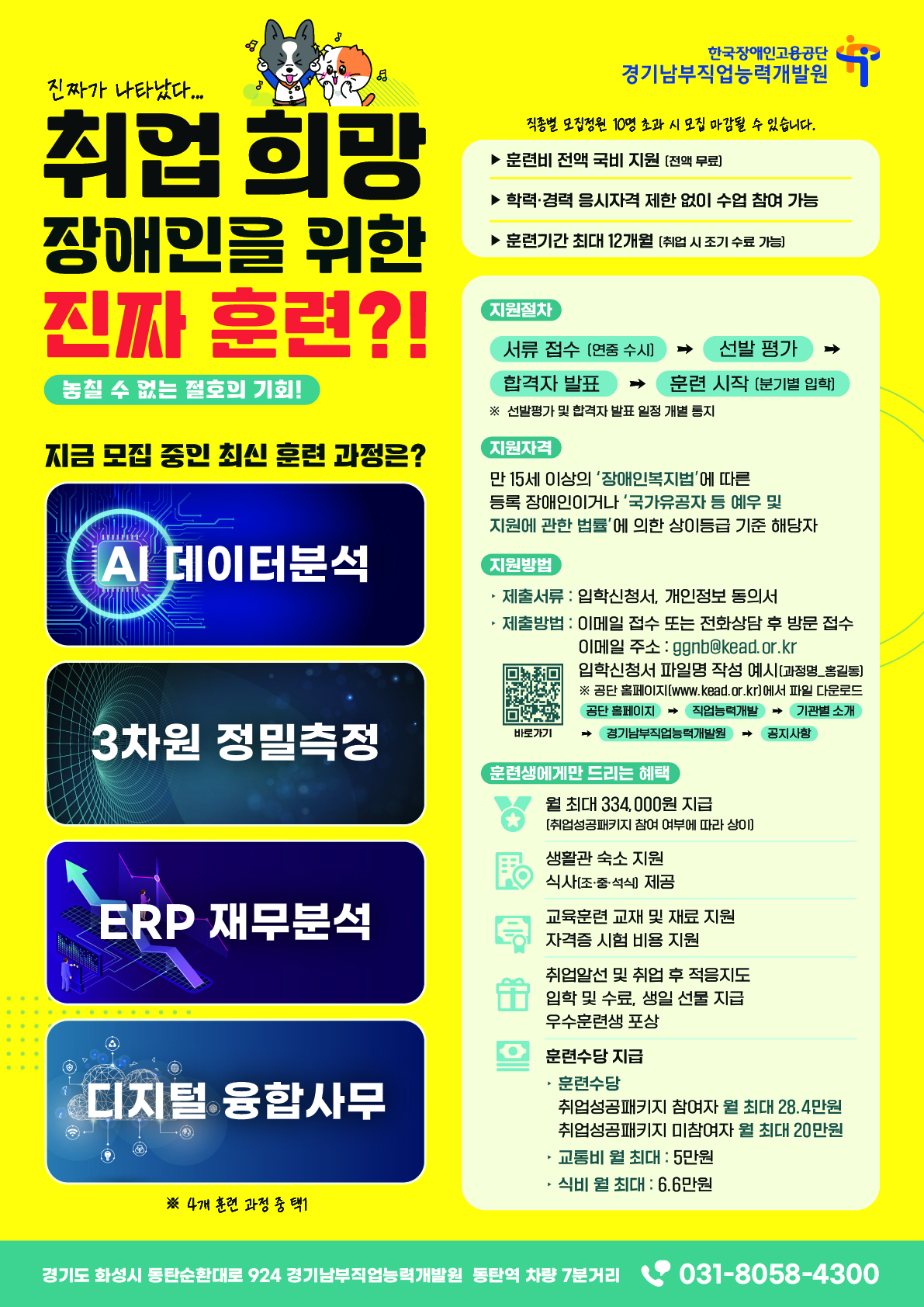 장애인 훈련생 모집안내(경기남부직업능력개발원)