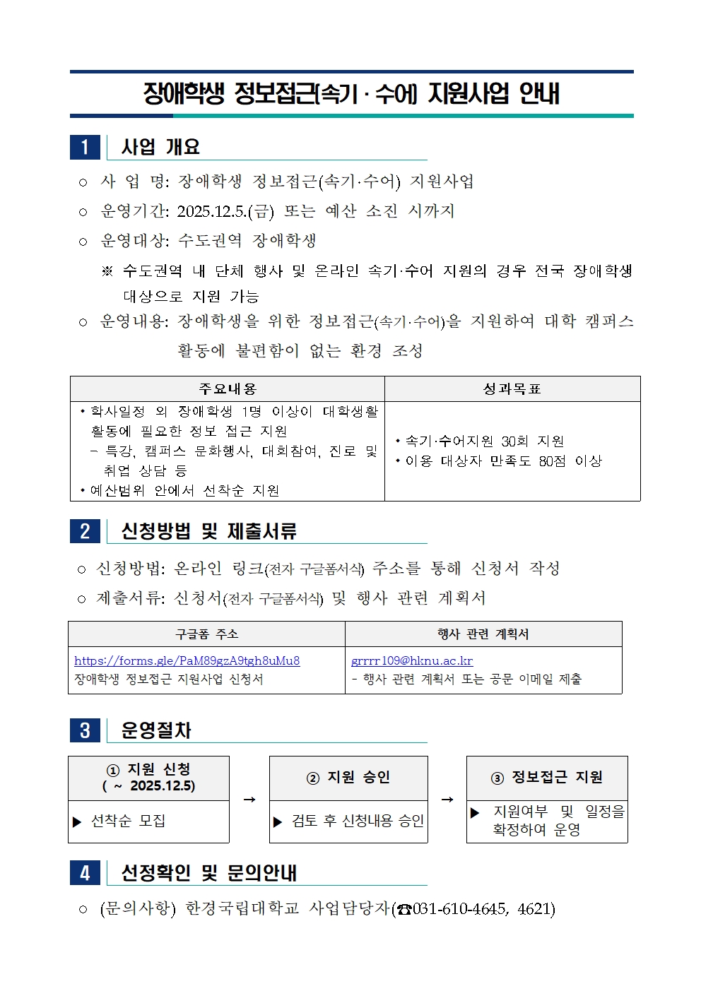장야학생 정보접근(속기,수어) 지원사업 안내