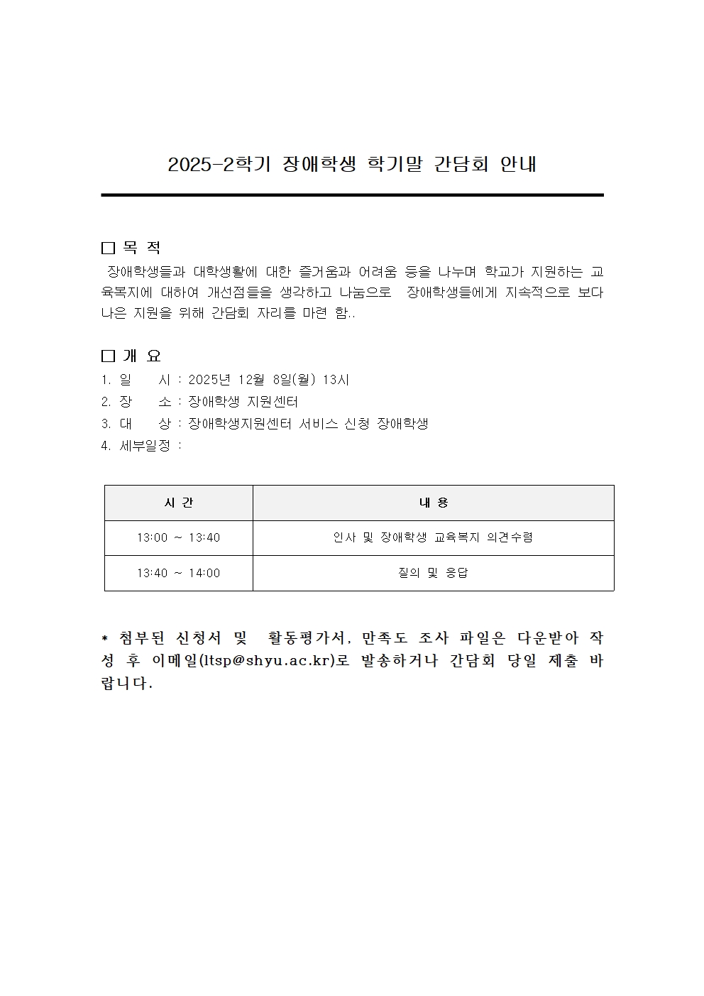 2025-2학기 장애학생 학기말 간담회 실시 안내
