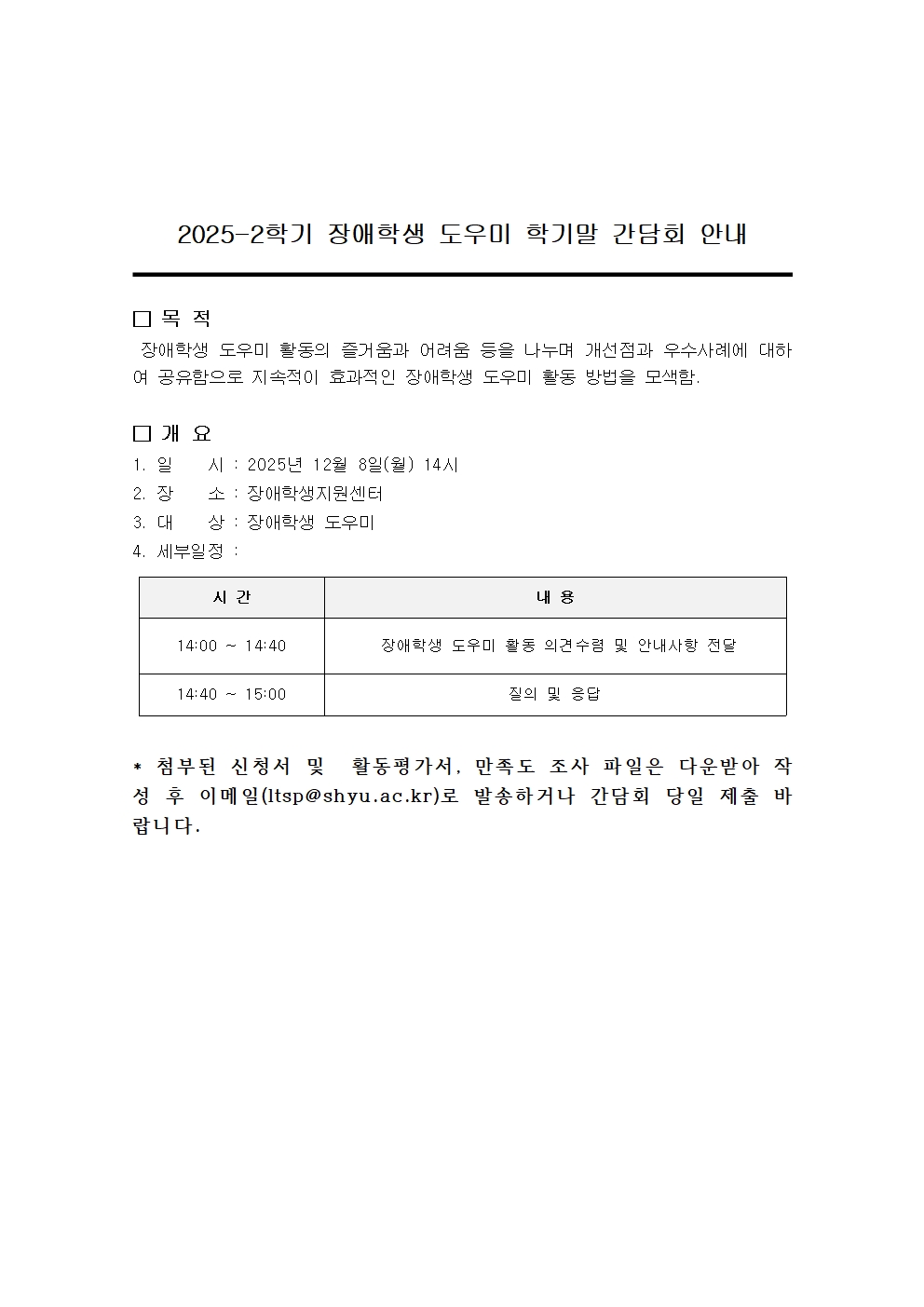 2025-2학기 장애학생 도우미 학기말 간담회 실시 안내